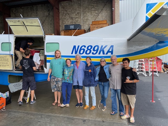 I am now at the airport waiting for the commuter plane to land with Edwin and Silipei who are flying in from Honolulu to fence the back of the property. Several evening’s ago, a neighbor’s big dog ran through at feeding time chasing the cats up into the hau forest. The cats don’t need this scare. I sent out an SOS and luckily the help is on it’s way.