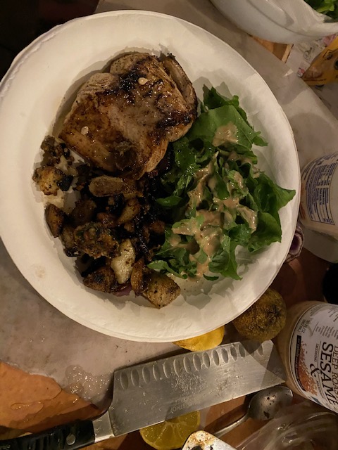 I am having some delicious meals here. The Friday farmers market has the freshest mahimahi ever. This was dinner last evening. There are also wonderful baked goods along with home grown vegetables and fruit.