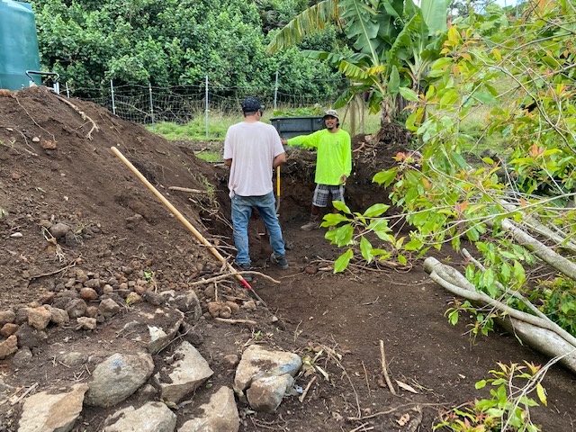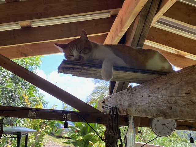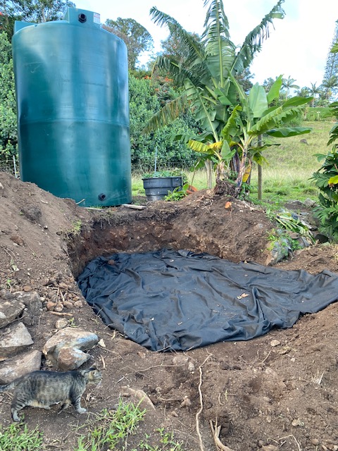 The squash plants have flowers now. Seria, on Oahu, gave me a bodi tree and I finally got that planted this week. Also five pakalana along the fence line. More seeds were sewn into a little container to sprout and then put in the ground-lilikoi, cucumbers, green beans, white beans and tomatoes. The one tomato plant is giving beautiful red tomatoes with abundance. I think fireplace ashes are the key.