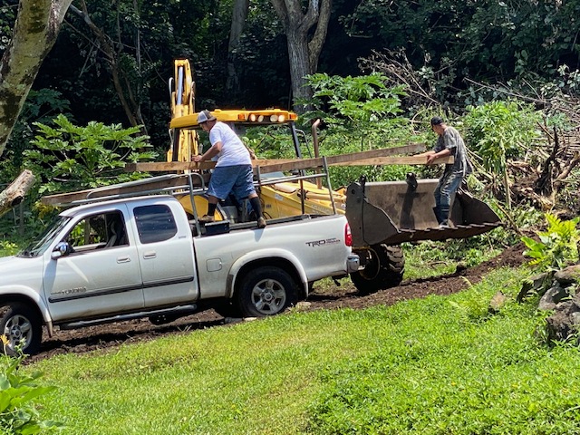This has been a very exciting week as stuff is really starting to move. This blog is going to be a short one due to time limits this morning. Company arrived on Friday and I spent much of the day in preparation for the weekend work and cleaning up the construction mess. This morning two friends are flying in for a four day work-a-thon. Finally the big piles of cut hau are going to be chipped on Monday and possibly Tuesday.