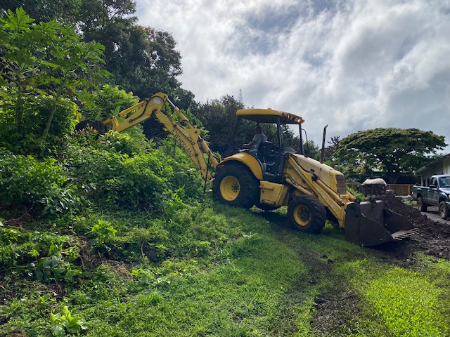 It has been raining in the early morning just enough to make the loose dirt mud. It is a very messy time right now, but progress is being made inspire of weather constraints and machinery breakdowns. We are now waiting for Bradley to borrow a truck to bring up gravel for the concrete footings. Both front and back yards are prepared for the concrete pouring.