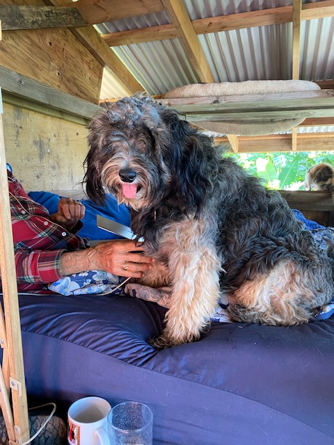 Mana had a grooming appointment at Petco on Tuesday so we made the trek into town. When I took her in and they saw how matted her fur has gotten she got rejected. Luckily a woman there said she would come here to cut all this fur next week. But meanwhile I had Mana with me to do all my errands which was a real painnd some had to be cut short. I did manage to get a large roll of weed barrier which will go on the ground for the patios. It will be the barrier, sand and pavers. The real hassle with all of this big stuff is getting people to tie it down. They are all hesitant due to liability and I have to really do some fast talking and bribing, but after time they usually concede. I need to learn how to do this job.