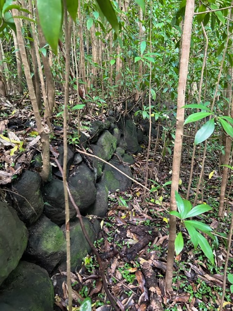 The land is all terraced lo’i with  amazing very old beautiful stone walls used to separate the sections and hold the stream water for the kalo irragation.