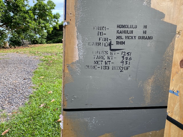 Just about the same time Thursday evening I picked up Edwin and Silipei, my helpers from Oahu. They were absolute life savers and I could have never done this without their help. It only took a day to unload and Sam was back Saturday afternoon to pick up the empty crates and return to Royal Hawaiian.