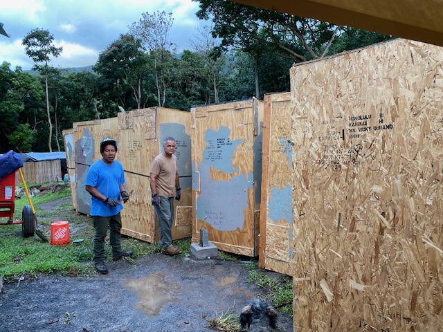 Chris, the builder has his tools still inside and the solar equipment is inside so the space is very crowded. Edwin and Silipei are super hard workgoiers and they started 6:30 Friday morning and we were still working late Sunday afternoon just in time to catch the plane back to Honolulu. It was a moving marathon! Besides unpacking and moving furniture to make room for more and more being unloaded they were putting shelves together while I was unpacking, throwing boxes and papers outside and putting things on shelves. I have ended up with quite an accumulation of family heirlooms. They will all make an impressive coconut research institute-Koali Niu. Besides Indrajit expertise we are planning on having visiting scholars come here to share knowledge.