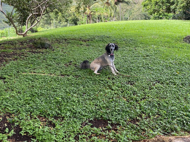 The the animals all seem good. As usual Mana is up to a lot of tricks and I am hoping she will soon mature and settle down. She takes slippers and hides them (I just found one under the blankets in Ehu’s kennel) and chews glasses. She is a doll and like my shadow-constantly near, and sometimes too near.