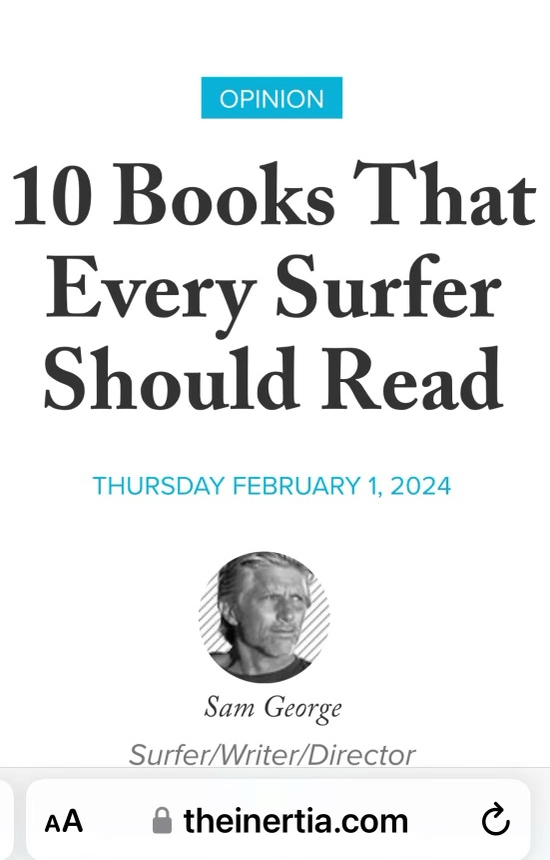The other really great happening is my book Wave Woman was written up in the Inertia as the ten most important books that surfers of all ages and sexes should read. My write up is about eight books down on the list and I am “over the moon” thrilled about this. The Inertia is a popular internet gathering place where the voices and thoughts of surfers flow in the modern era. My son in law Billy just sent me the notification yesterday morning. Pretty exciting when he said there were over 1,000 surfing books he was familiar with. Hopefully it will raise sales.