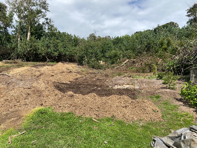 The tulip trees are now gone for phase I of the coconut planting. I was thrilled beyond belief when the last ones hit the ground. The terraces now have to be cleaned up by hand to expose the ancient rock walls. We will be doing that during the next days and hopefully planting coconuts in early March.