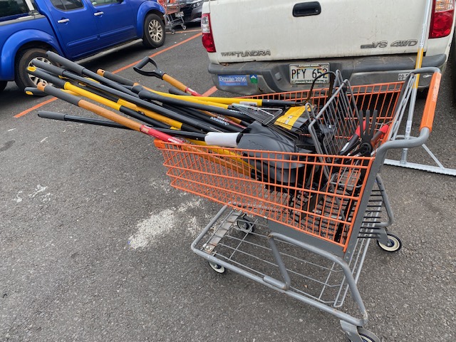 Kira and I made the trek into Kahalui on Tuesday to pick up supplies which included purchasing a lot of ground preparation gardening tools. We picked up rakes and pitch forks for spreading the chips along with picks and shovels for digging planting holes. All this equipment was funded by our grant and will be used for the coconut planting. The next step is working by hand to clear the small branches left from the chipping that will be raked and put in small piles and do controlled burns. Then the dirt and chips will also have to be taken off the rock walls so they are re-exposed. This will be lots of fun work for me and hopefully Kira. Having extra help from Kira has been a real blessing.