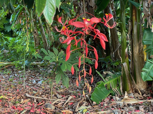 A little late getting this out today as I took a pruning class this morning at Entabeni Gardens with Michael Kristiansen. The Kristensen’s amazing garden is located about forty minutes away in upper Nahiku, a spot that gets three hundred inches of rain a year. This class was not only exceptionally helpful for my gardening but also an analogy for life. Besides providing information we got to see some of their gorgeous plants. Two themes were modification, adaptability and that all living organisms are connected. A thought that gives to a lot of interest because it is not just plants…..