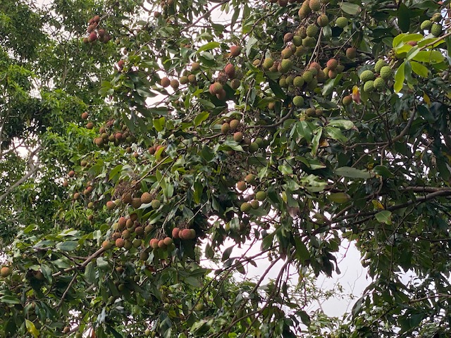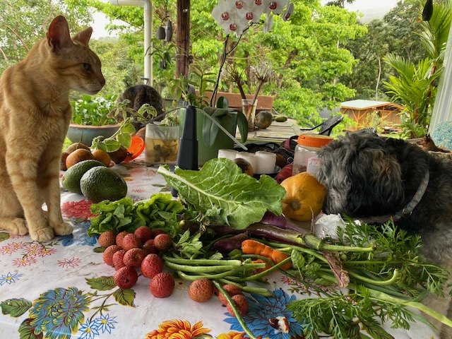 Yesterday at the farmers market they gave out Kapuna bags of veggies and lychee. I have so many squash growing, but not yet enough to sell commercially at this point so I give them away. Eventually they will be a cash crop. The lychee tree is loaded with fruit which will soon be ready. There are always papayas, oranges, coconuts, breadfruit and limes. My young fig tree already has figs and I can hardly wait till they ripen.