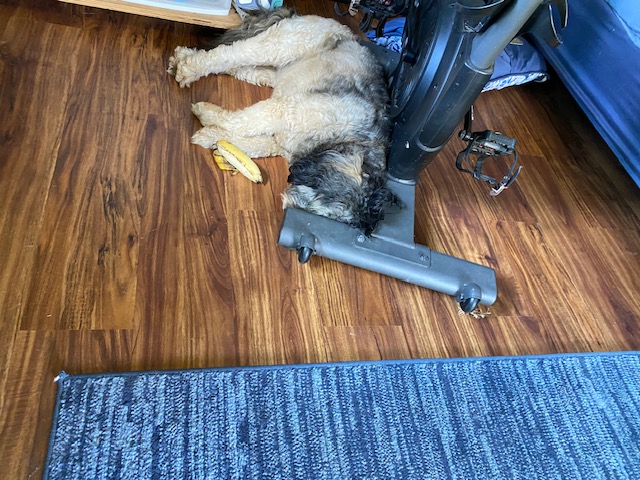 I finally figured out what to do with my excess of bananas that often go to the cow next door. I got a dehydrator and am in the process of dehydrating now on this very sunny day as it depends on solar. Stay tuned-in about five more hours they should be ready. I just looked down to notice somehow Mana had got a banana, but decided not to eat it. Even at three years she is still a handful, but getting better about jumping up on people.