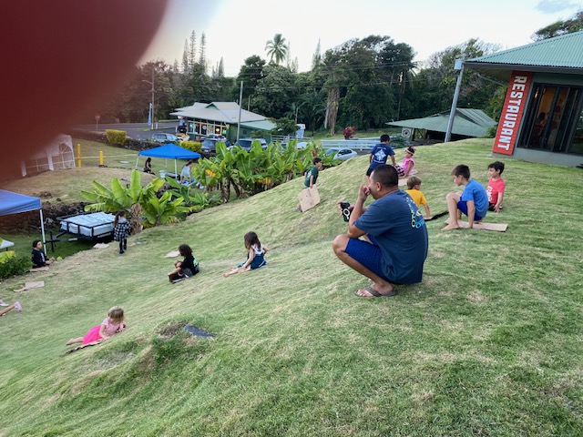 After the market I went up the hill to join friends at the Ranch Restaurant where the market can be seen and the music heard. This is where the kids have a great time sliding down the hill on pieces of cardboard.