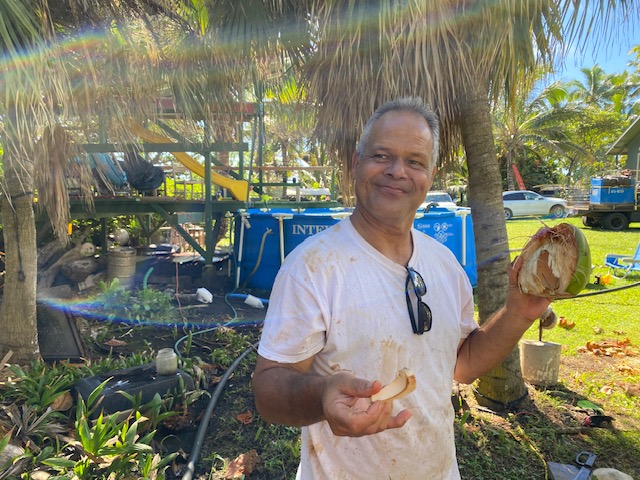 We spent part of a day looking for rare coconuts to add to our gene bank and found some special varieties. Edwin happily found a coconut known for it’s texture and taste that he remembered from growing up on his south sea island.