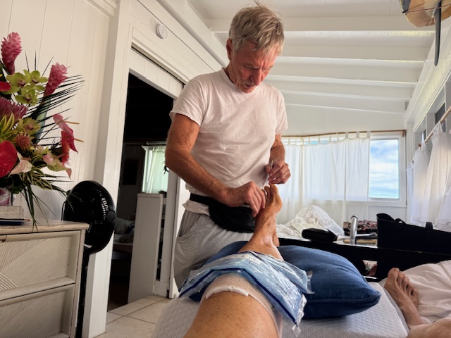 The couple of days on Oahu before the operation were nice and particularly a lunch at the Outrigger Canoe Club with Yana and Joey Cabel. Jericho flew over from Long Beach to be my Wing Woman and she was wonderful. She came back to Hana, got me situated and flew back a few days ago.