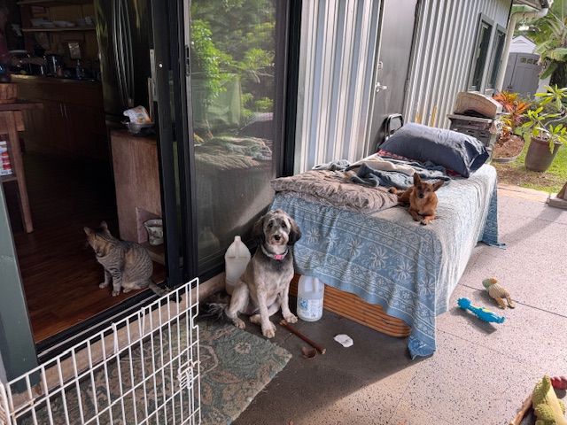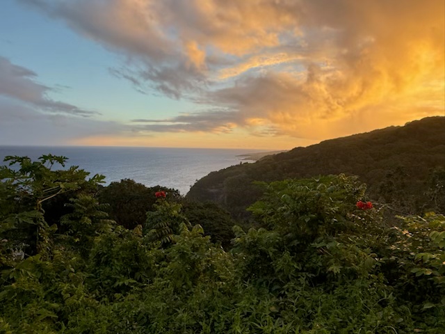 I just received a text that some people in Kipahulu have killed a bull and they are giving free meat to anyone who shows up at 12. Don’t know if I will go for that. There is a big beautiful black bull in the pasture next door. I give him bananas and ti leaves and can’t bear the thought of what the neighbors will eventually do with him. Wish I could rescue him….