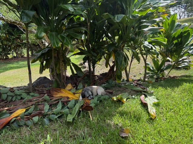 Thanks for tuning in. It is a rainy afternoon here in Hana. It has been a pretty good week with the exception of having to put Mr. Sad Eyes down. No wonder he has looked sad as he had a tumor in his mouth and Dr. Alan said it would be a long painful death if I didn’t end it. As much as I hate doing this I never want them to suffer. This always adds sadness to the surrounding days.