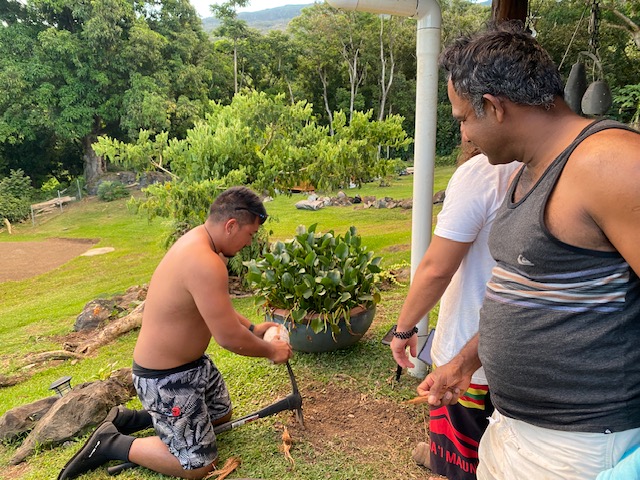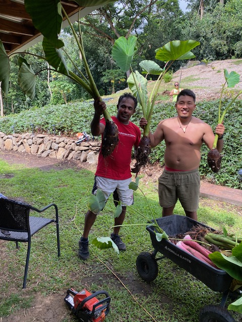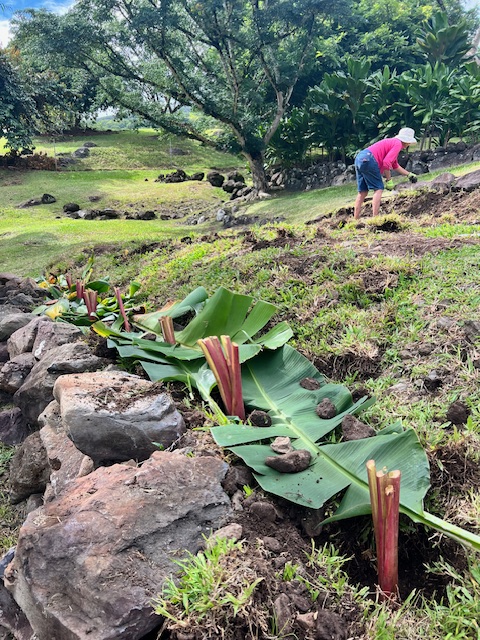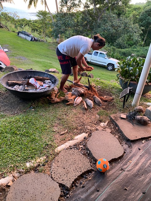 From there starting on Tuesday he will do more on the path and then work on extending the clearing work on the edges. Getting this hau out has been a 25 year dream so needless ti say I am over the top thrilled. This was all beautiful pasture land in 1940 when Bob’s father purchased this property along with many other acres. This property, a part of Koali Ranch, has a lot of very important good and bad history . The bad is the way it was acquired by the man (Drummond) who sold it to Howard and Betty along with a partner. I think they were unsuspecting of the ways Drummond acquired the property from the local families.The story makes a chapter (or more) of outrageous Hawaiian history.