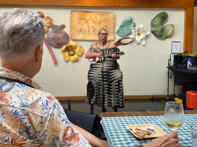 In last weeks blog when talking about my trip to Oahu I forgot to mention my wonderful hostess Jean who made my stay very comfortable and it was great catching up with her. Although she was a class ahead of me at school we didn’t really know each other until our mutual Holo Holo trip to Cuba. Sunday night’s party was a holo holo group get together.