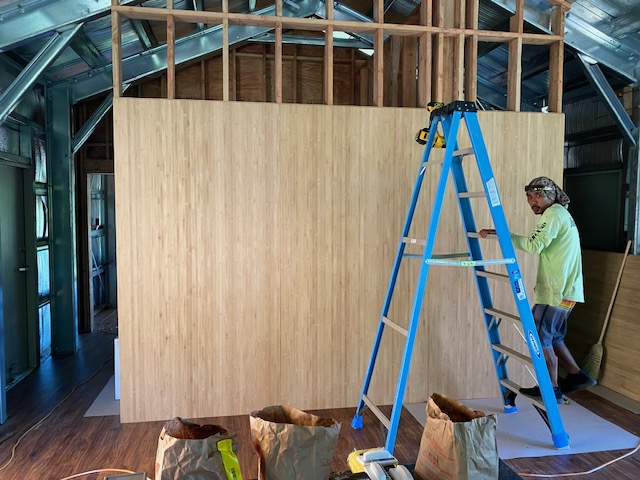 I also picked up two sheets of bamboo plywood to finish one wall. The yellow and white ginger were in full bloom all along the drive which is a beautiful site. The trip back gets long, but that is a small price for living here. And once the building is complete the trips will be few and far between.