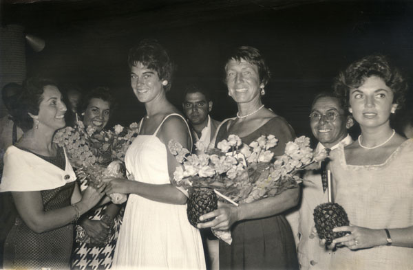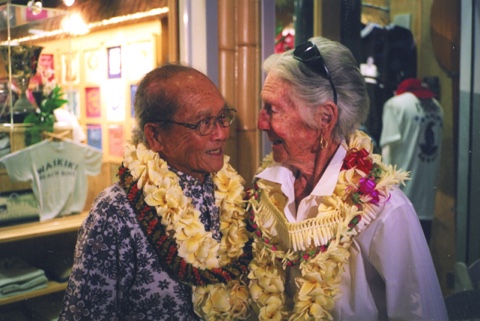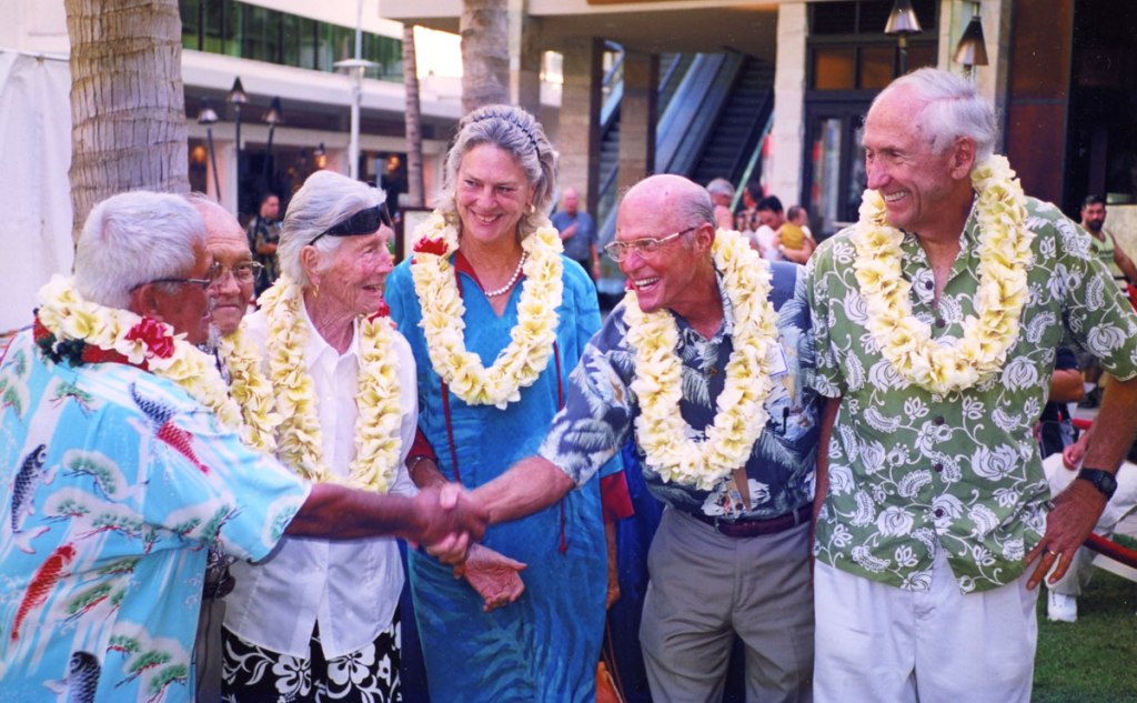 Surfing Legends! Left to Right: Rabbit Kekai, Clarence Maki, Betty, Vicky Durand, Ricky Grigg and Peter Cole