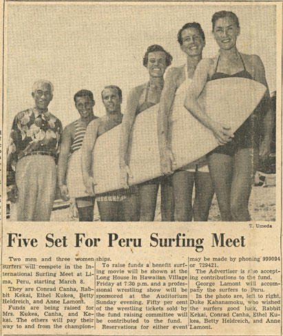 Champion regularfoot surfer Joey Cabell heads to the mainland to be inducted into the Surfing Walk of Fame in Huntington Beach. He won’t get bored on the flight! He’s reading Wave Woman.